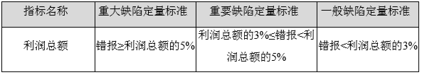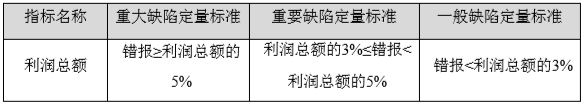 公司确定的财务报告内部控制缺陷评价的定量标准如下:
