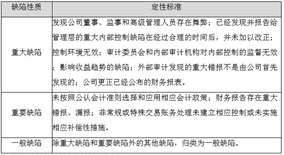 财务报告内部控制缺陷:指不能合理保证财务报告可靠性的内部控制设计和运行缺陷,即不能及时防止或发现并纠正财务报告错报的内部控制缺陷。
