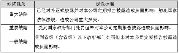 内部控制缺陷具体认定标准,并与以前年度保持一致。