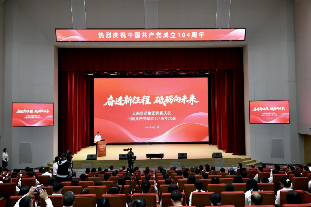 2025年7月1日,云南白药集团党委以“奋进新征程砥砺向未来”为主题,隆重召开庆祝中国共产党成立104周年大会。云南白药集团党委书记、董事长张文学讲授专题党课,副董事长、总裁董明主持会议。在入党宣誓暨重温入党誓词仪式上,集团党委书记、董事长张文学发表致辞并领誓,云南白药58名新党员面向党旗庄严宣誓,在薪火相传中接续奋斗使命,284名老党员重温誓词,用仪式唤醒使命,用铮铮誓言