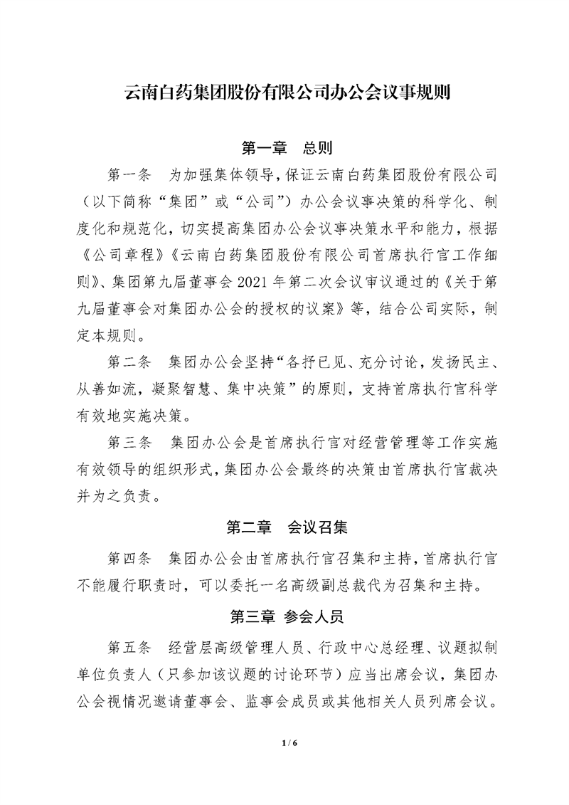 云南白药集团股份有限公司办公会议事规则