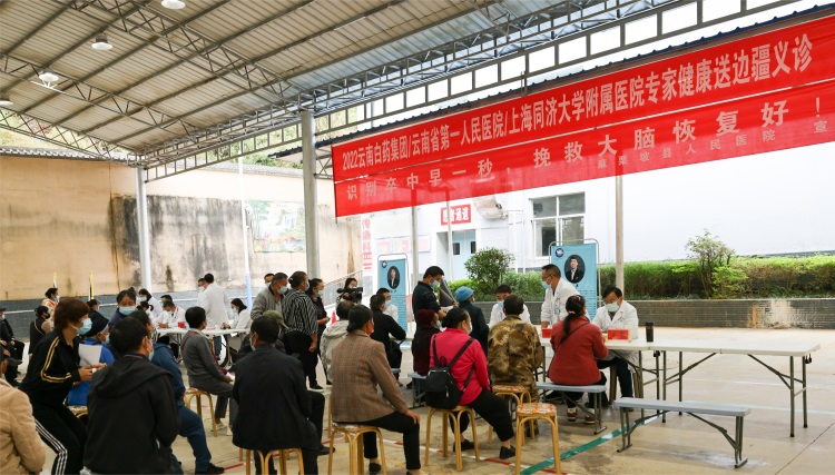 文山壮族苗族自治州麻栗坡县以爱国、奉献的“老山精神”闻名全国。2022年10月27—28日,云南白药组织向麻栗坡县捐赠药品,与县卫健局共邀上海市同济大学附属同济医院、云南省第一人民医院专家在麻栗坡县人民医院开展义诊活动,围绕骨科、消化内科、神经内科等相关疾病与病患进行诊询,并对当地基层医师进行培训。