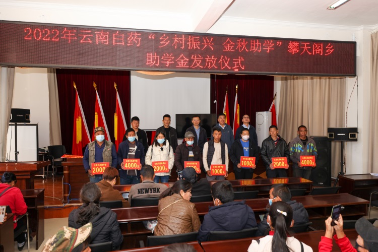 2022年11月10-11日,云南白药董事、党委副书记(主持党委工作)路红东带队调研考察维西县的中药材种植及加工相关产业,与县政府、农业农村局、乡村振兴局相关领导进行座谈交流,捐赠药品,对维西县攀天阁乡学生发放助学金。在云南白药对维西县教育的持续资助下,受惠学生截至目前累计232人。