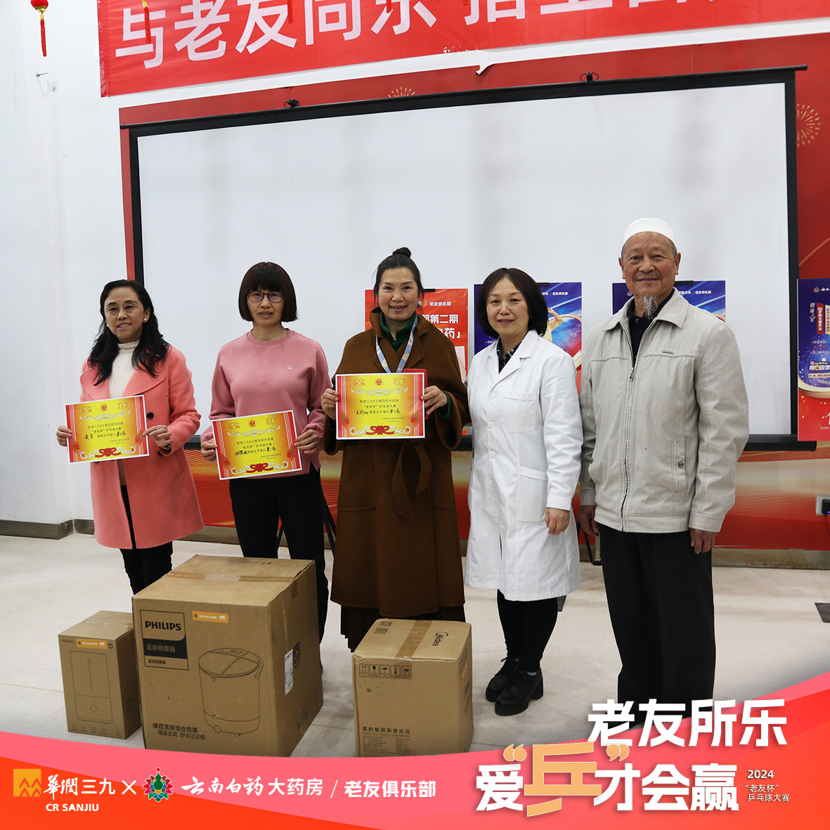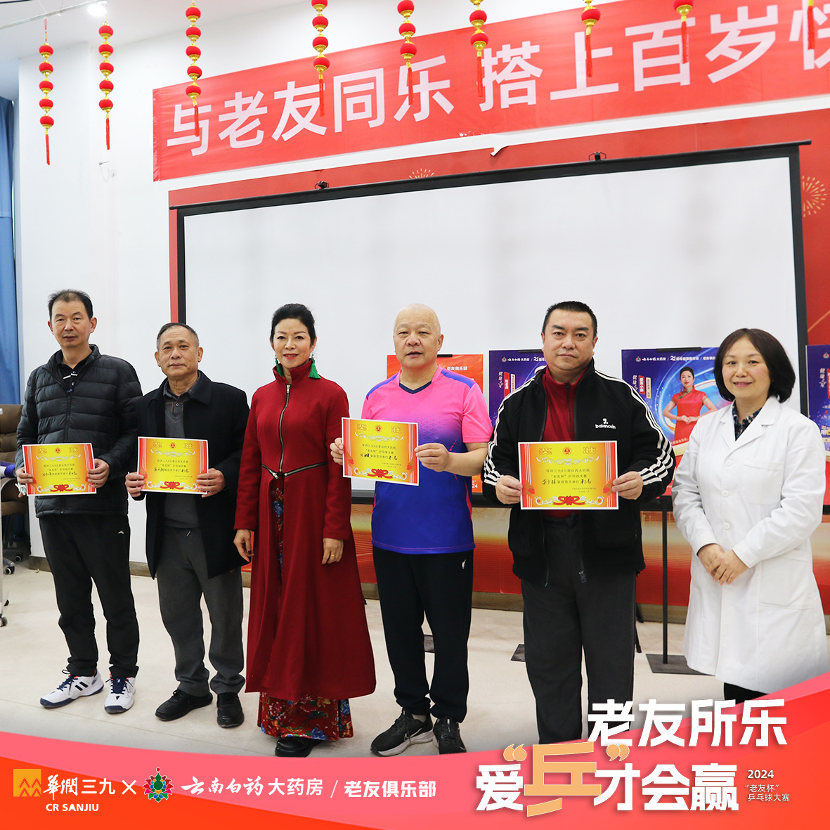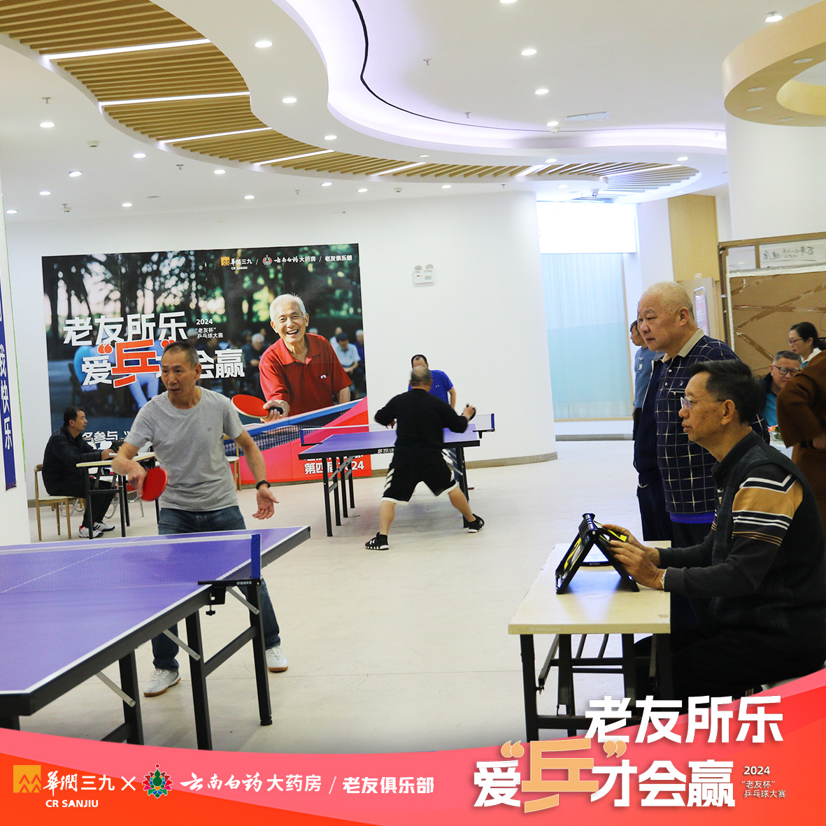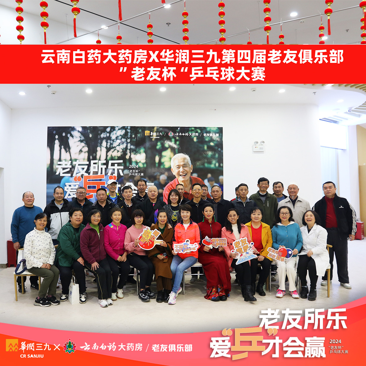 2024 年11 月22 日至 25 日,云南白药大药房老友俱乐部联合华润三九举办了“老友杯”乒乓球大赛,活动圆满落幕之际,收到了诸多球友的积极反馈,让每一位云南白药大药房工作人员都十分感动,并坚定了继续为老年朋友们提供丰富活动的决心。