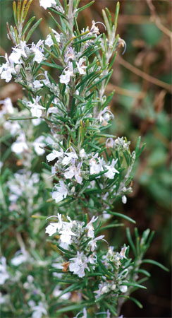 为唇形科植物迷迭香 Rosmarinus officinalis Linnaeus 的地上部分。5~6月采收,洗净,切段,晒干。