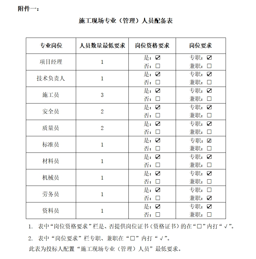 3.7拟派项目管理人员要求:符合《施工现场专业(管理)人员配备表》要求。