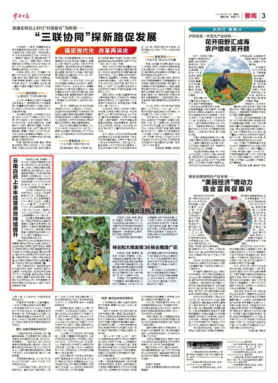 云南白药坚决贯彻落实云南省委、省政府大力发展中药材产业的决策部署,充分依托云南省中药材资源禀赋,围绕中药材全产业链,扛起龙头企业和“链主”责任,以“强主业、稳增长、可持续”原则,打造云南品牌中药材全产业链。云南白药充分发挥企业担当,履行社会责任,通过多元化手段联农助农实现产业致富,不断探索实践乡村振兴领域创新举措,全力推动云南省中药材产业高质量发展,为地方经济和行业发展贡献力量。