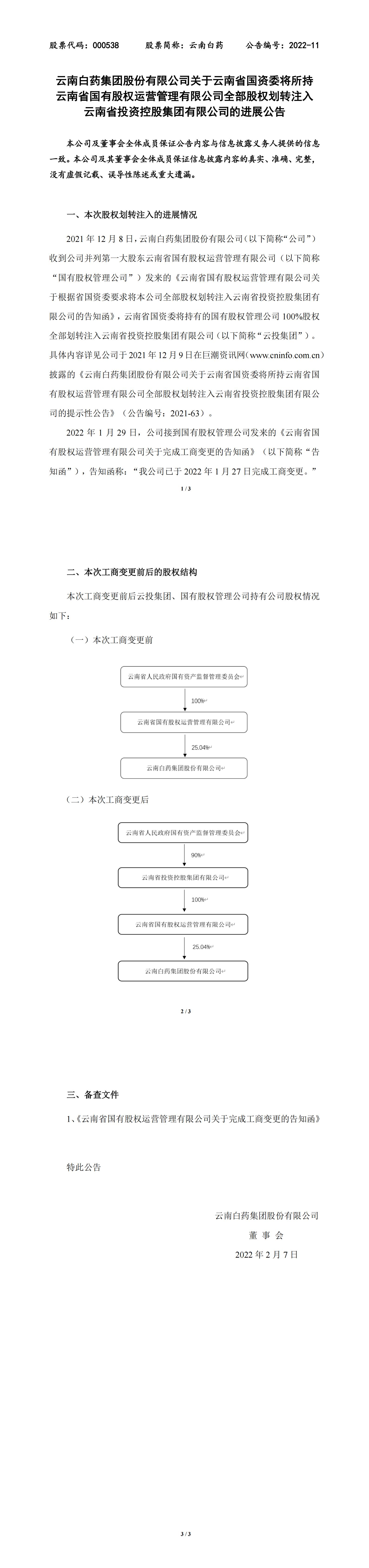 关于云南省国资委将所持云南省国有股权运营管理有限公司全部股权划转注入云南省投资控股集团有限公司的进展公告
