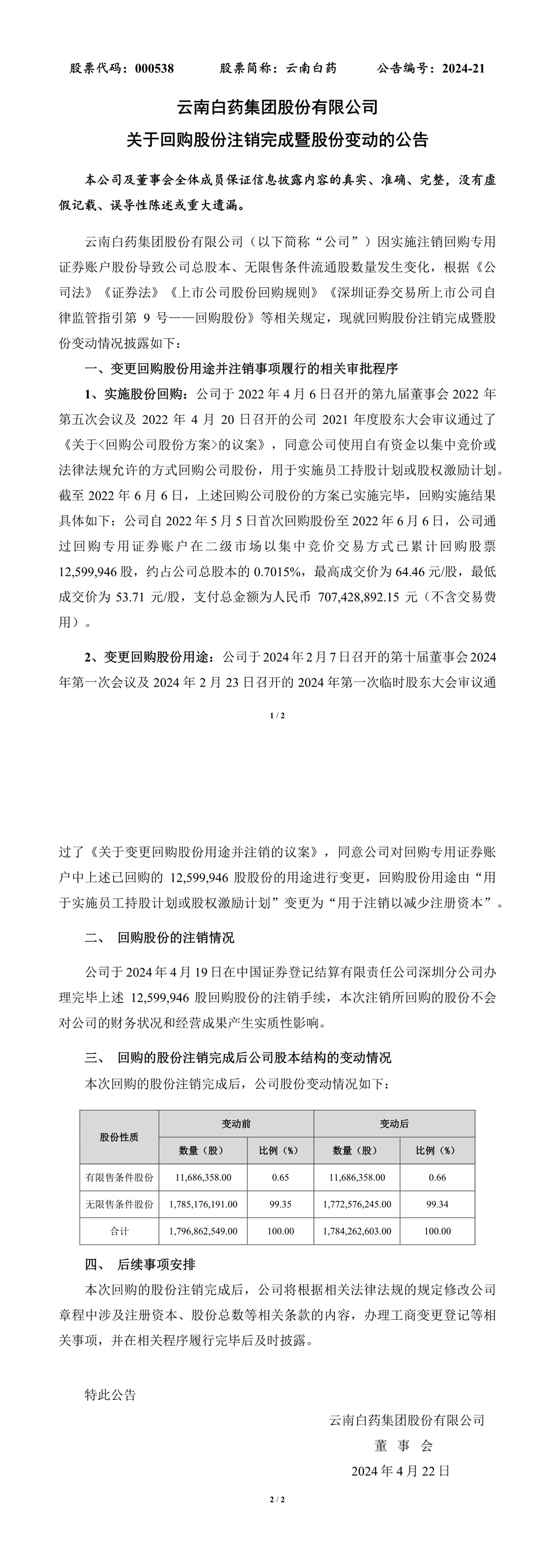 关于云南白药集团股份有限公司2023年度股东大会的法律意见