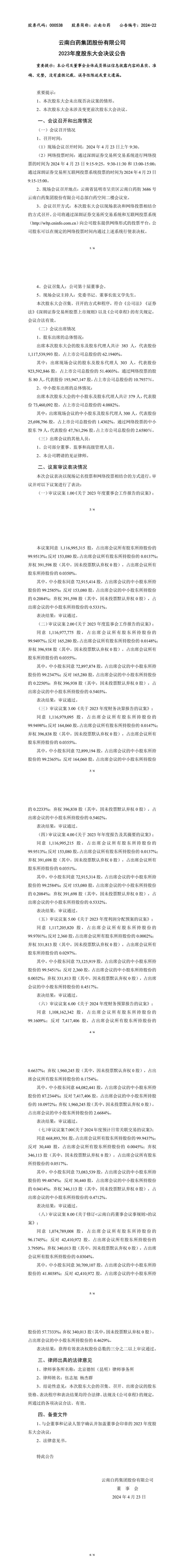 关于云南白药集团股份有限公司2023年度股东大会的法律意见