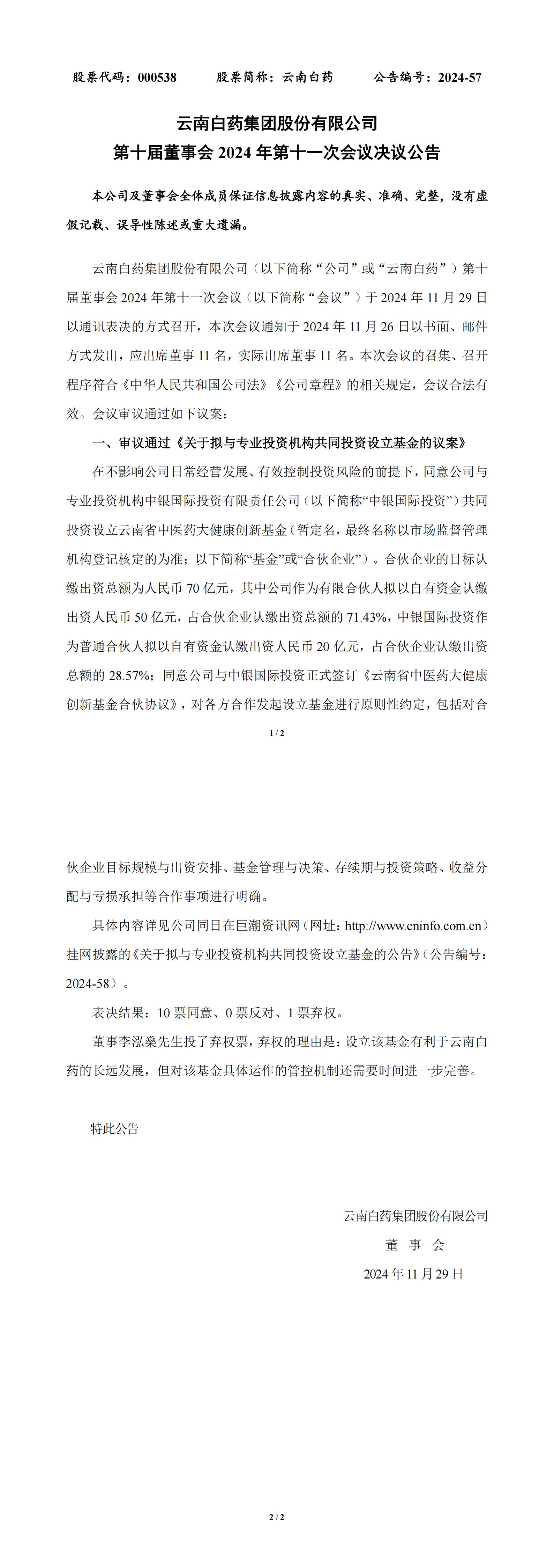 第十届董事会2024年第十一次会议决议公告