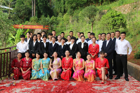 云南白药天颐茶源临沧庄园有限公司副总经理陈总宣布入仓,全场响起掌声、清脆的鞭炮声、伴随缓缓进入茶仓的茶叶,云南白药天颐茶品开启普洱茶储存新时代,这里将为全国各地的茶人储好茶,最优质的普洱茶将在最适合存储的自然条件下逐步转化,从而实现普洱茶的储存魅力。庄园所有员工参观茶仓并合影,铭记云南白药做茶历程的又一次飞跃。