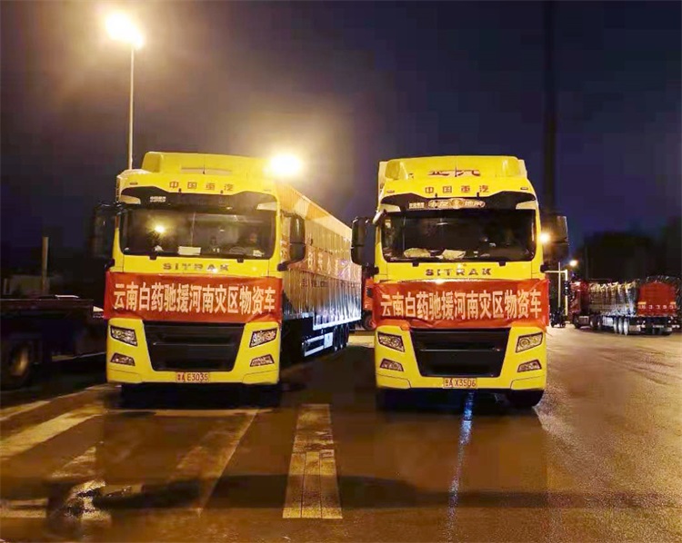 7月23日深夜,随着最后一批紧急救援药品和健康产品装载完毕,云南白药捐赠的物资星夜运往河南灾区。