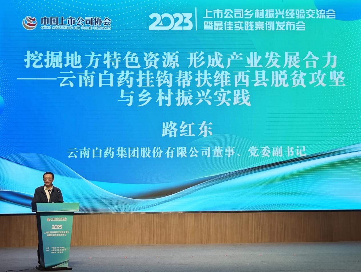 云南白药集团股份有限公司董事、党委副书记路红东出席大会,代表公司领取“上市公司乡村振兴最佳实践案例”奖项,并作主题经验分享。