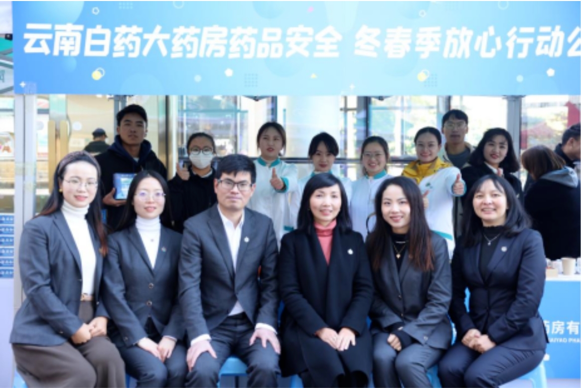 云南白药大药房有限公司作为云南本土知名连锁药店,积极响应此次倡议,在1月5日当天,安排优秀代表参加启动仪式,组织药学服务人员在现场为群众提供健康指标监测、穴位贴敷理疗、养生花茶热饮等暖心服务,受到了主管部门及群众的一致好评。