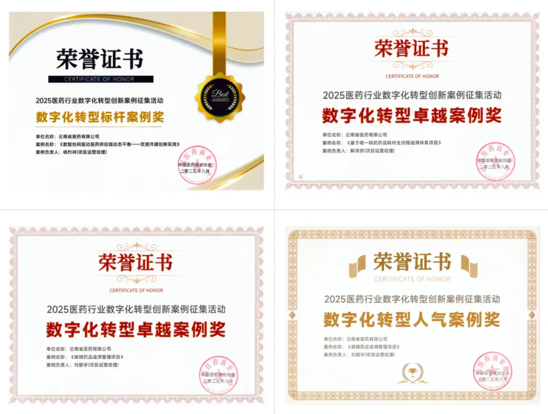 会议同时还举办了2025医药行业数字化转型创新案例发布仪式,省医药公司凭借其在推动医药产业数字化升级中的前瞻布局与卓越实践,从众多参选企业中脱颖而出,斩获4项荣誉,彰显了省医药公司在数字化领域的强大实力和对行业发展做出的价值贡献。