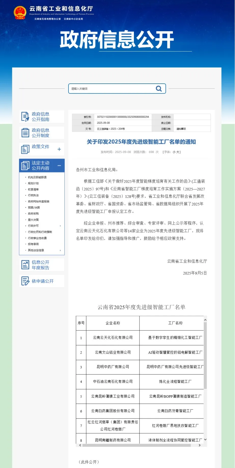 近日,云南省工业和信息化厅联合省级相关部门公布 2025 年度先进级智能工厂认定结果,云南白药集团股份有限公司牙膏智能工厂成功入选,成为全省 14 家获此殊荣的企业之一。