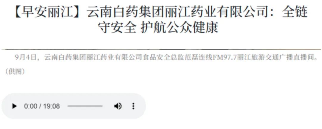 中药资源事业群丽江公司参加丽江市“安全月”宣传活动,通过当地旅游交通广播FM97.7进行电话连线采访,向公众介绍公司在药品安全、社会责任履行及全流程质量管控体系建设的实践。